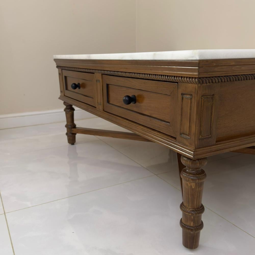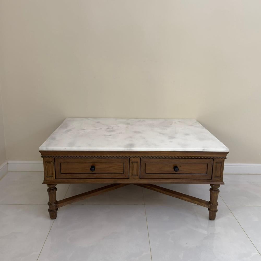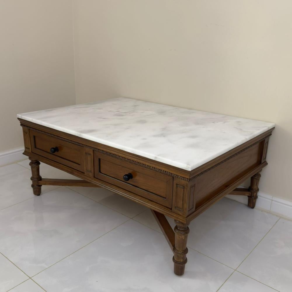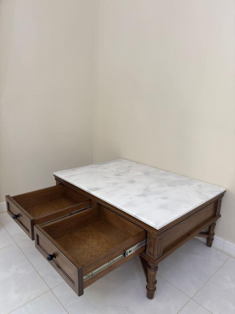 طاوله وسط ب رخام صناعي لا يتأثر من المشروبات نوع الخشب المستخدم لرح سنديان طبيعي مع ارجل من خشب الصنوبر المقاسات عرض ١١٥ سم عمق ٨٥ سم ارتفاع ٥٠ سم ...