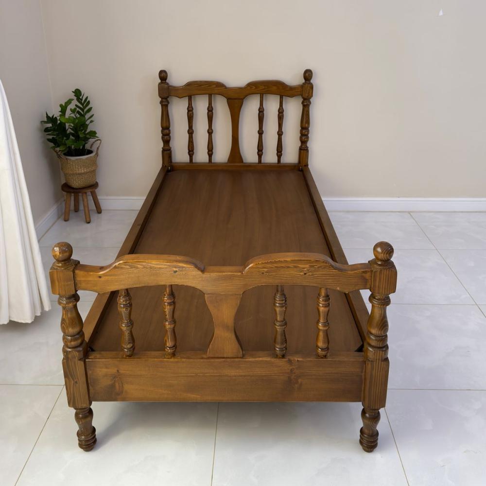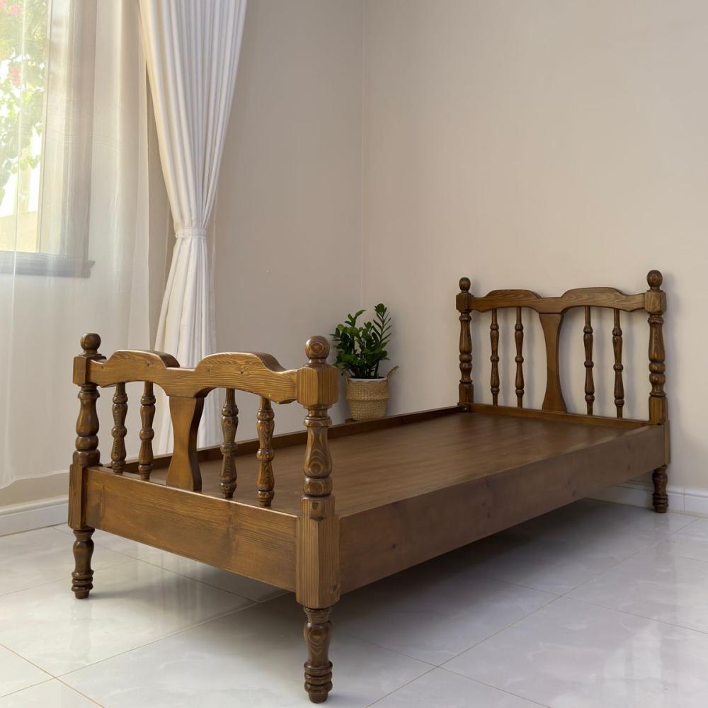 سرير بطابع ريفي مصنوع من خشب الصنوبر الطبيعي
